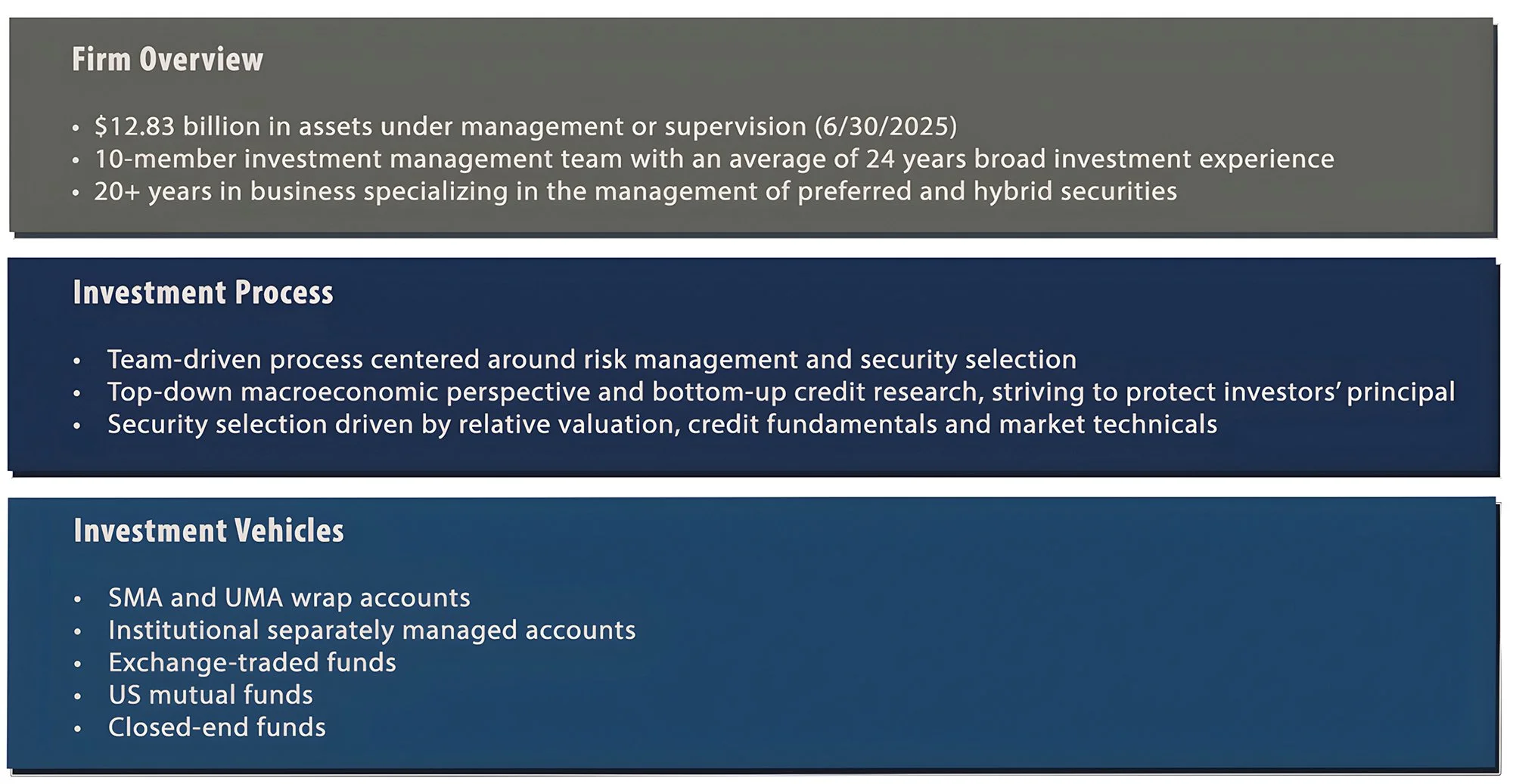 Stonebridge Advisors LLC was established in 2004 and specializes in the management of preferred and hybrid securities.